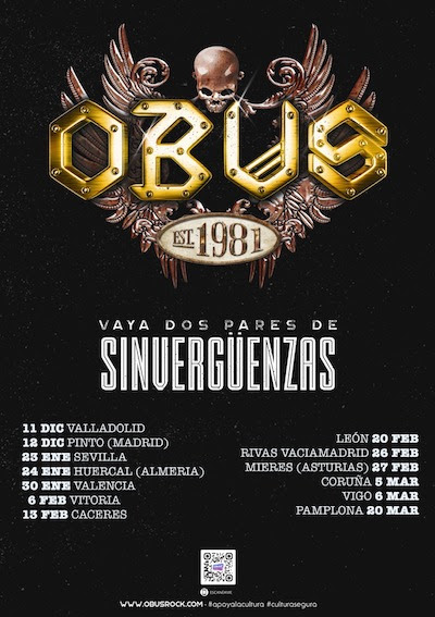 Obús tras anunciar la gira por teatros y auditorios con su formación completa bajo el nombre de «Vaya Dos Pares De Sinvergüenzas«, desvelan las primeras fechas que darán inicio el próximo 12 de diciembre y que continuará a lo largo de 2021, con parada en Asturias el 27 de febrero.