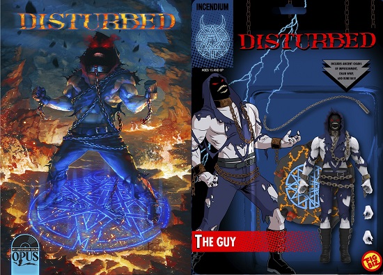 Algo más «humilde» es la novedad que presenta Disturbed. En colaboración con Incendium Online y Heavy Metal Magazine lanzan al mercado «Disturbed: Dark Messiah«, una serie de cómics en la que la mascota de la banda «The Guy» hace su debut en el medio gráfico. El lanzamiento vendrá acompañado por la figura de acción del protagonista aunque se pueden adquirir por separado al precio de 19,95 y 29,95 dólares respectivamente.