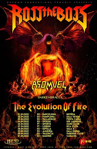 Acompañado por los británicos Asomvel y el combo gallego Dark Embrace como bandas invitadas, si las normas sanitarias lo permiten al fin presentará en España su nuevo disco de estudio “Born Of Fire” y los grandes éxitos de su paso por Manowar.