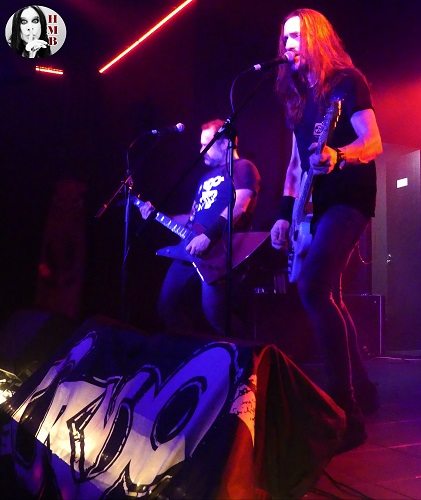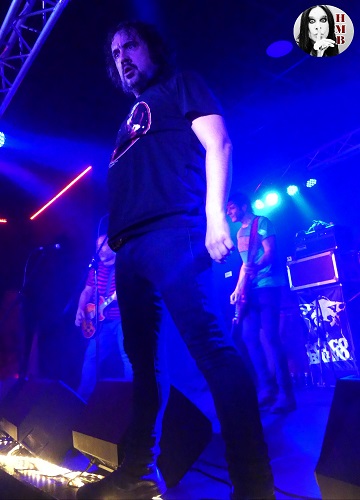 El siempre presente recuerdo a su malogrado guitarra Asier Martínez “Pulpo” planea sobre la Gong en forma de bandera, unas veces en las manos de Manu, otras en las del público más próximo al escenario. Sin bajar nunca la intensidad, muchas veces rozando lo salvaje, con un Manu desatado en labores de “frontman” y maestro de ceremonias. Varias veces se escuchó “Grooo!!”, su clásico grito de guerra, durante una velada que arrancaba con la terna formada por “Al Despertar”, “Mírame” y “Lasciva”. Gran inicio que nos preparaba para el primer viaje de Manu por la sala llevado en volandas por una amalgama de voluntarios locales junto algunos llegados de la propia Euskadi, Burgos y comunidades vecinas. No faltó la ceremonia de homenaje a Lemmy con su habitual ronda de Jack Daniels para los asentados a pie de escenario. Tampoco tomar posesión de la barra del bar al otro extremo del local o el paseo a bordo de su habitual tabla de surf hasta el exterior de la Gong, mientras Manu canta trallazos como ”De Cristal”, “Mienten”, “Brindemos Juntos” o “Morir y Matar”.