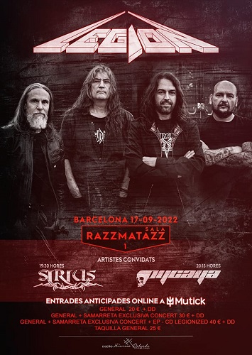 La leyenda del thrash patrio Legion actuará el 17 de septiembre en la barcelonesa Sala Razzmatazz 1 para presentar su nuevo EP “Legionized” que verá la luz el próximo 7 de junio a través de Demons Records. En su retorno a los escenarios contarán como bandas invitadas con Pycaya y Sirius.