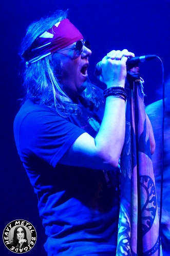 Leather Boys arrastrarían de inicio algún que otro problemilla de sonido. Con un Leather Rose al micro cuya voz iría de menos a más a lo largo de la noche, arrancarían con una “Rebirth” en la que el sonido desaparecería en un par de ocasiones de los amplis. De ahí que el inicio del show fuese algo extraño, augurando una mala noche para los asturianos que al final no fue tal.