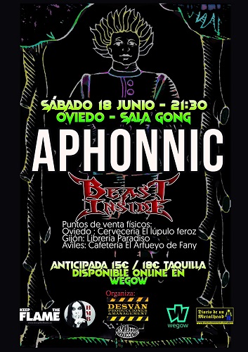 La presentación en Asturias de «La Reina«, último trabajo discográfico hasta la fecha de los alternativos gallegos Aphonnic tendrá finalmente como banda invitada al combo «thrash old school» praviano Beast Inside.