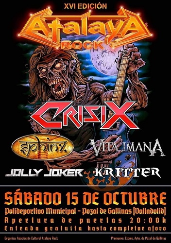 El regreso del Atalaya Rock se celebrará el sábado 15 de octubre en su ubicación habitual, la localidad vallisoletana Pozal de Gallinas. Tres años después de su última entrega todo volverá a la normalidad para un evento gratuito que tiene como protagonistas en este esperado retorno a Sphinx, Jolly Joker, Vita Imana, Crisix y Kritter.