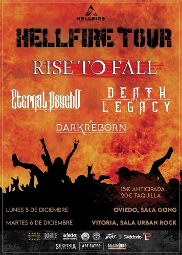 Rise To Fall, Eternal Psycho, Death & Legacy y A Dark Reborn se lanzan a la carretera bajo la denominación Hellfire Tour. Dos fechas, Oviedo y Vitoria-Gasteiz, en la que descargarán todo su arsenal sonoro los días 5 y 6 de diciembre.