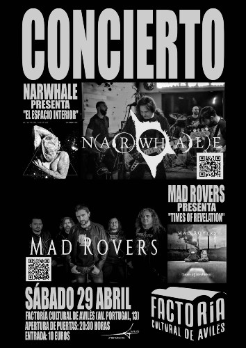 Nuevo escenario para Mad Rovers en la gira de presentación de su notable último disco «Time Of Revelation«. En esta ocasión regresan a Avilés, punto de partida del tour allá por octubre del 2021, para hacer suya la Factoría Cultural. En esta ocasión compartirán tablas con una banda amiga como son los progresivos Narwhale, también inmersos en la presentación de su nuevo trabajo «El Espacio Interior«.