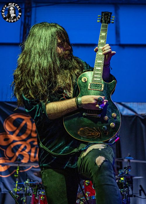 Ni a la banda ni al público congregado frente a ella le importó lo desapacible de la jornada ni esas nubes que anunciaban una lluvia que finalmente no haría acto de presencia. Peor para ella. “Devil’s Breath”, con un Michael Arthur Long pletórico y decidido a dejarse la piel y parte del vestuario. “Purple Skin” rebajaría el tremendo ímpetu con el que había comenzado la noche. “Mejor que los Maiden” exclamaba alguien desde detrás nuestro.