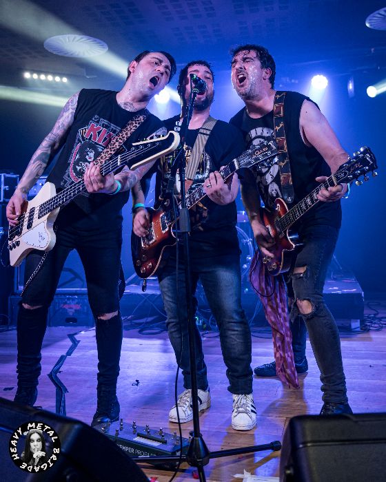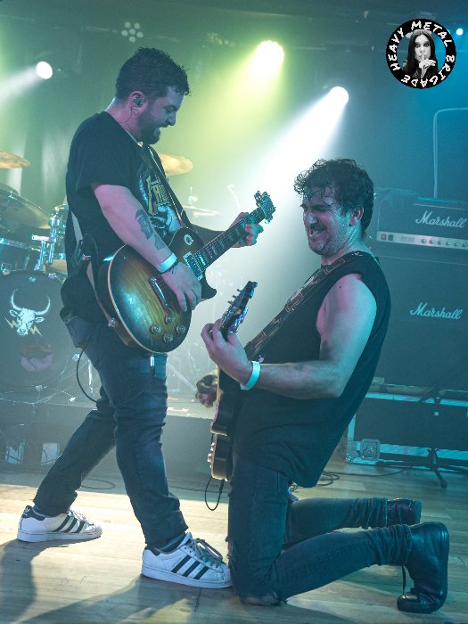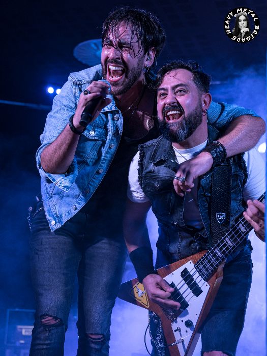 Y es que, como digo, lo que les pueda faltar en originalidad lo suplen con carisma, también buenos solos. Véase el que entrega Pere Pinto en una “Hoy Venimos A Morir” tras la que llegarían los obligados agradecimientos a los anfitriones de la velada. La banda seguiría enfrascada en su set, conectando con la audiencia, caldeando el ambiente que suele decirse, hasta que llega el momento de subir a escena a Manu, voz de Baja California, para formar dupla vocal en “Si Tiene Que Ser”.