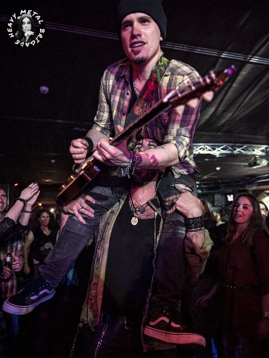 Llegarían entonces las obligadas presentaciones, el paseo de Manu entre la gente, incluso el intercambio de instrumentos entre Aaron y Hernández. Pudimos ver a Javi con el slide en “Polvos Mágicos” y el talkbox en la muy celebrada “Dueños De La Noche”. Encarando ya el tramo final del set, huelga decir que la fiesta era de las grandes. En “La Cara B Del Rock” es el propio Javi Monge quien acaba a hombros de Manu, en una revisión asturiana de aquella mítica fotografía de Brian Johnson cargando con Angus Young y su inseparable SG.