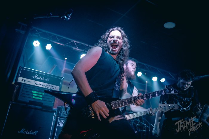 Los cartageneros Ángel Negro acompañan a los californianos en su paso por la península. Practican un heavy metal de tintes melódicos y también power que no parecía casar demasiado con el speed / thrash del cabeza de cartel. Pero le echaron ganas y en Cifre tienen a un vocalista de llamativo registro y carisma. Faltan algo más de diez para las nueve cuando salen a escena y “Mercenario Íbero” ofrece destellos de su particular modo de entender el power metal. Interesantes solos doblados los que dibujaron aquí.