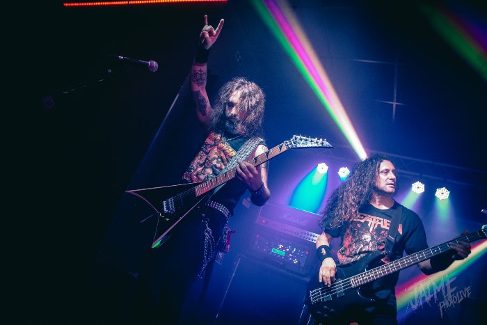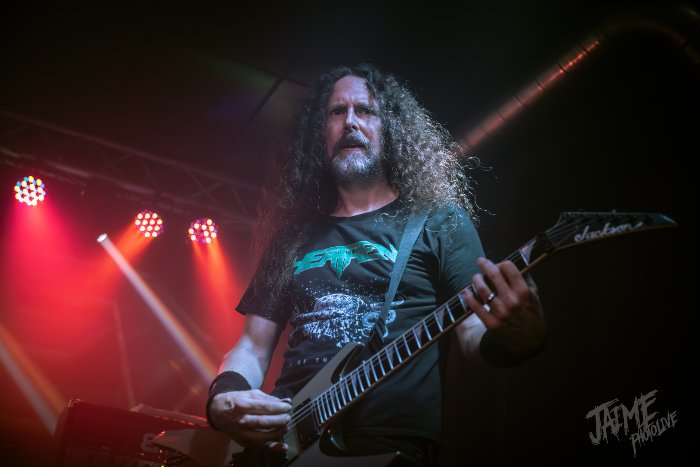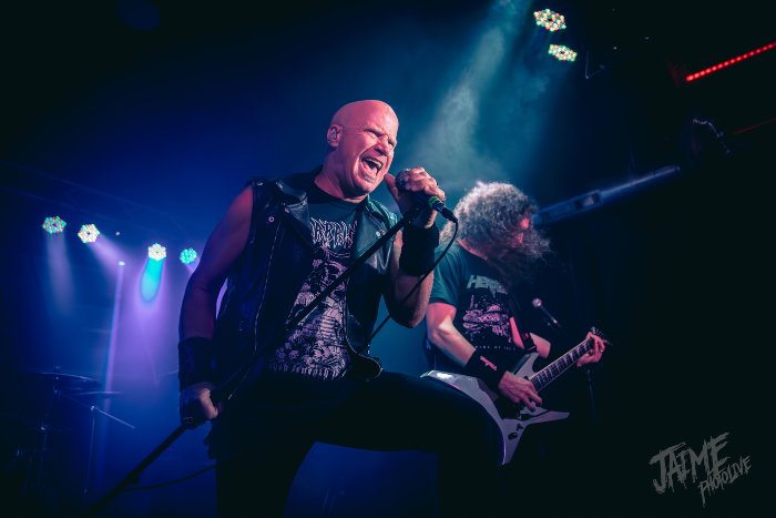 Pasan trece de las diez cuando disparan la intro y Heathen salen a escena dispuestos a adueñarse de nuestros cuellos. Con un gran telón de fondo en el que se dibuja el logo de la banda, David White y los suyos procuran un inicio de set a la altura de la leyenda. Con un sonido estupendo, diáfano y con pegada aún en las partes más alejadas del escenario, “Dying Season” ya da la verdadera medida de una banda como esta.