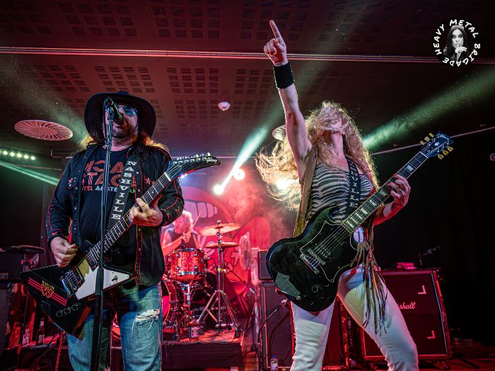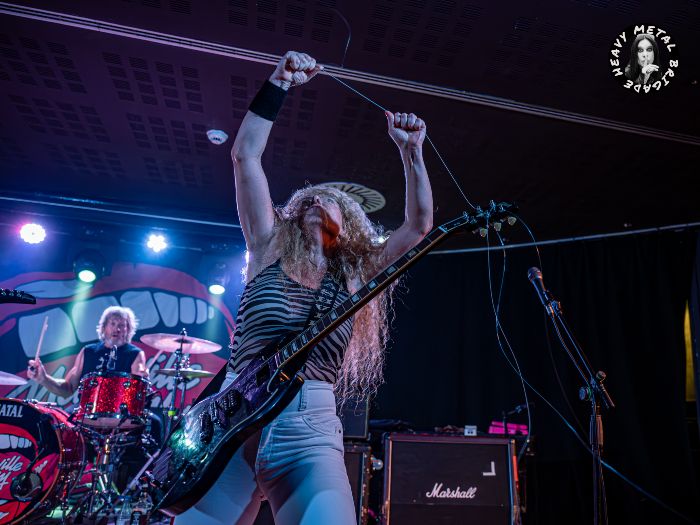 Crujen algunas rodillas cuando Leather Rose nos manda al suelo en “St Mary’s Dance”. Leather Latin Lover aprovechó entonces las virtudes del inalámbrico y se perdió entre la gente. Mientras tanto, Leather Sex confeccionaba uno de los solos más certeros del set. Es el propio bajista de la formación asturiana quien carga con alguna de las estrofas de “To The Curb”, uno de sus cortes más rotundos y potentes. Tras una pequeña ristra de agradecimientos llegaría el turno de “Born In the 70’s”, un corte que ya apunta a clásico para la banda y que recibimos de buen grado. Su despedida, furibunda interpretación del “Ace Of Spades” mediante, provoca su habitual catarsis final con Leather Latin Lover haciendo crowd surfing y Sex & Rose perdiéndose entre la gente. Siempre divertidos.