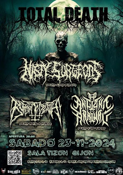 Velada de sonidos extremos la que tendrá lugar el próximo sábado 23 de noviembre en el gijonés Tizón Sound. Bajo la denominación de Total Death tendrá lugar la primera parada en Asturias del combo deathcore The Ancient Arrival, los death grinders Nasty Surgeons y la formación local Burnt To Death.