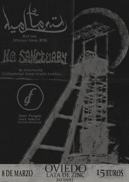 De la mano de Northern Blaze Prods y bajo la denominación Soil And Sea tomarán posesión del escenario de la ovetense Lata De Zinc el trio doom Meltem, el combo crust punk vasco No Sanctuary y el proyecto dark ambient Doce Fuegos.