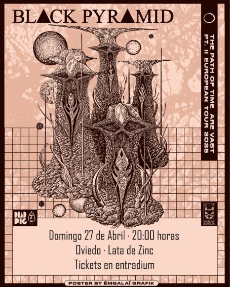 El trio doom Black Pyramid con base en Massachussetts recalará en la ovetense Lata De Zinc el próximo domingo 27 de abril. Andy Beresky a la voz y guitarra, Eric Beaudry al bajo y Andy Kivela a la batería presentarán su último álbum «The Paths Of Time Are Vast» publicado el pasado 2024 tras casi 10 años sin editar disco.