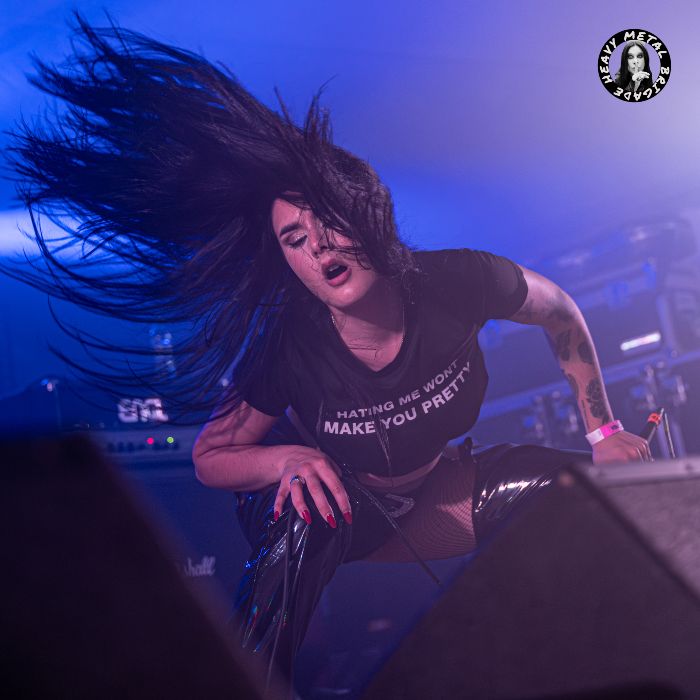 Tengo la impresión de que “Flesh & Bone” se quedará en sus setlists durante largo tiempo. Su riff se pega como pocos de entre su catálogo. Si además Laura extrae ofrece una interpretación tan dinámica en lo físico, como rotunda en lo vocal, pocos peros caben. La propia frontwoman de origen luarqués pediría entonces luces rojas para “Guide Them To The Light”, de aquél “Venom” que en marzo cumplía su primer año de edad. Y aunque algún acople vino a hacer de las suyas aquí, Borja dibujó otro solo marca de la casa. Dedicada por Laura a Jaime de Burial Records, que había alcanzado la cincuentena durante la semana, “Never Again” extrajo la versión más completa del aparentemente infatigable batería Jorge Rodríguez.