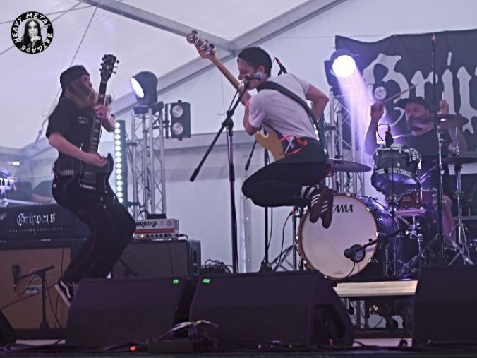 Segundo round del Vidiago Rock, éste con las descargas de  Grippers,  Weak,  The Wizards,  The Movement y  Aneuma. Jornada sabatina que incrementó el número de fieles y vino a desarrollarse sin grandes percances excepto por el hecho de que, por una vez y sin que sirva de precedente, llegamos tarde al recinto. Para cuando atravesamos la puerta, arriba del escenario encontramos al cuarteto punk madrileño Grippers. Un punk el suyo muy a la británica, o quizá me sugestione la camiseta de GBH que lucía la bajista y voz Rachel, que pareció hacer las delicias de eso que antes llamaban “el respetable”.