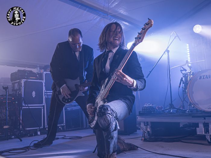 Pero si hubo un corte que me agradó sobremanera el sábado, ese fue “Crawling Knights”. El inicio tranquilo. El gran trabajo de guitarras que George Dee y Phil The Pain ofrecen después. Todo a bordo de un sonido tan cristalino como potente, cómo crujía el bendito Rickenbaker aquí, donde fue quedando la sensación de que estamos ante una banda llamada a hacer grandes cosas. Lo cierto es que la gente se arrancó por palmas en “Halftones To Eternity”. Y la pareja guitarrera de The Wizards respondió doblándose con una seguridad y un feeling por poco inconmensurables. Era el tramo final del set y Mason, ya descamisado, se vaciaría en consecuencia.