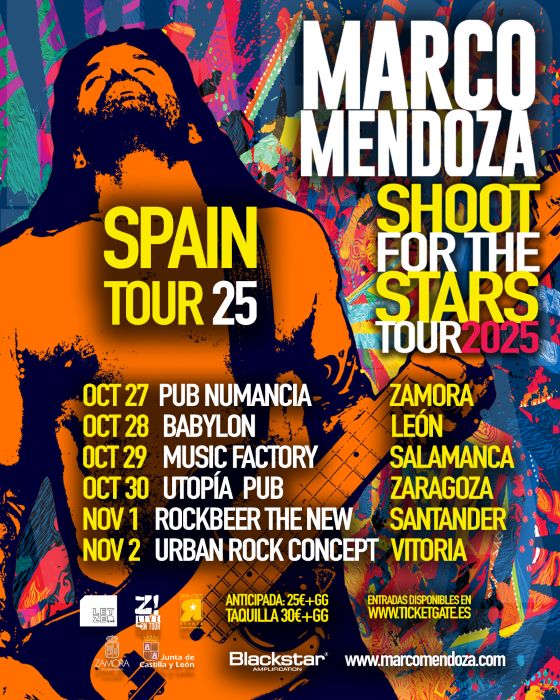 A través de Z! Live On Tour el bajista norteamericano Marco Mendoza, miembro de Whitesnake, The Dead Daisies o la última reencarnación de Thin Lizzy, actuará en Zamora, León, Salamanca, Zaragoza, Santander y VitoriaGasteiz entre los meses de octubre y noviembre dentro de su gira estatal denominada «Shoot For The Stars Tour 2025» .