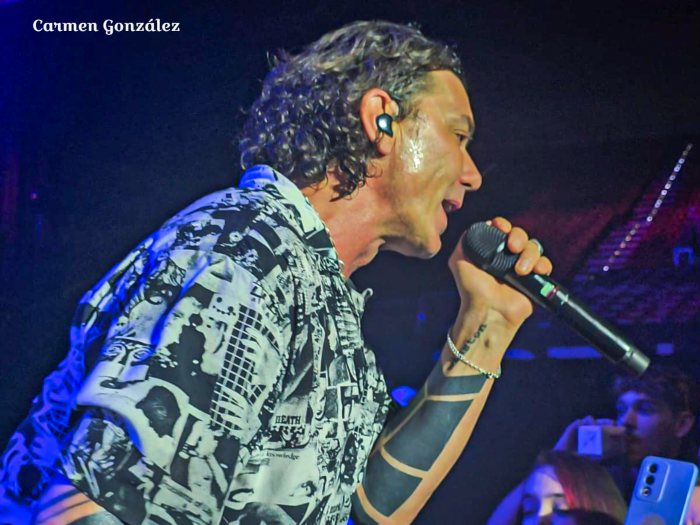 Si bien el escenario daba juego a la formación a interactuar con el público gracias a los distintos pies de micro situados estratégicamente por el plató. Estos cubrían laterales, fondos y tres delante como punta de lanza, su puesta en escena podría denominarse austera. Apenas un telón de fondo y bajo su paraguas media docena de dosificadores de humo. Apuesta por lo orgánico, ofrecer gran sonido al menos desde mi situación, buena selección del repertorio y actitud, sonrisas, interacción continua y entrega absoluta a favor del espectador.