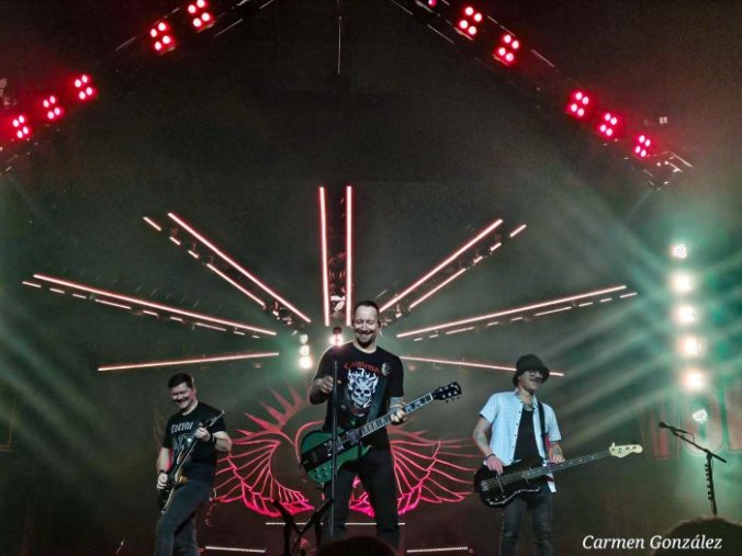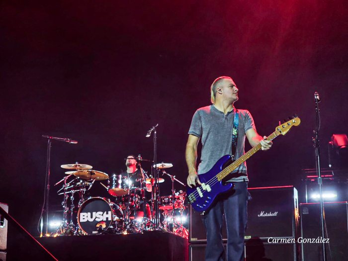 Ágil cambio de enseres en el escenario y turno para Bush. Como no podía ser de otra manera, puntualidad británica para arrancar su tiempo tras disparar por PA uno de sus propios hits «Glycerine«. Su frontman Gavin Rossdale aparece en escena para dar el pistoletazo de salida al set con una «Everything Zen» que colmó a tenor de las reacciones todas las expectativas de la más que nutrida representación de incondicionales que en ese momento daban un aspecto más que saludable al Cubec!.