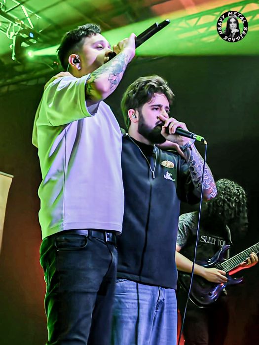 Siguiente intro, se oyen las olas del mar y una voz que acompaña a la voz rasgada de Mikel, “I Failed”. Más acción con “Fire And Ice”, donde Roro se despacha a gusto. Mikel agradece que se apoye el underground, solo por los directos ya vale la pena, apostilla. A partir de aquí, el ambiente vuelve a tornarse una fiesta. Suena “Bring The Torch” y en la parte final del tema, el incansable frontman nos pide acompañarle encendiendo las luces del móvil. “¿A quién le gusta el techno?”, nos pregunta, justo antes de la electrónica intro a “Awaken The Madness”, un tema que me recuerda a Bring Me The Horizon.
