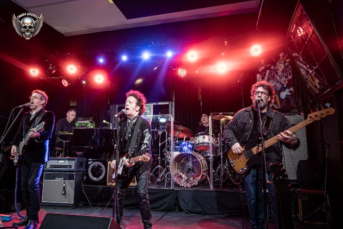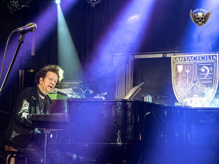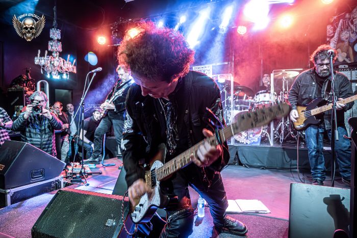 Momento íntimo a continuación, con Willie Nile sentado al piano interpretándonos “Streets Of New York” de su álbum homónimo publicado en febrero de 2006 del que conmemora su vigésimo aniversario. Este tema dedicado a la ciudad de los rascacielos recuerda ligeramente al sonido de Springsteen. Nile comienza cantando y tocando en solitario y posteriormente terminan acompañándole en su interpretación los músicos de Stormy Mondays. De igual modo sería la intro de la emotiva “Across The River” inspirada en el hambre de África, perteneciente a su álbum debut de 1980 “Willie Nile”, que también comenzaría con un solo al piano de Nile y luego se le unirían los demás músicos, para finalizar con un impresionante punteo de guitarra de Jorge Otero. Después de dejarnos a todos con el “vello de punta” tras escuchar este tema, Nile se dirige al centro del escenario con 5 chupitos de whisky para brindar junto a los músicos de Stormy Mondays, a los que describe como sus “brothers in arms” y que le acompañan en su gira española.