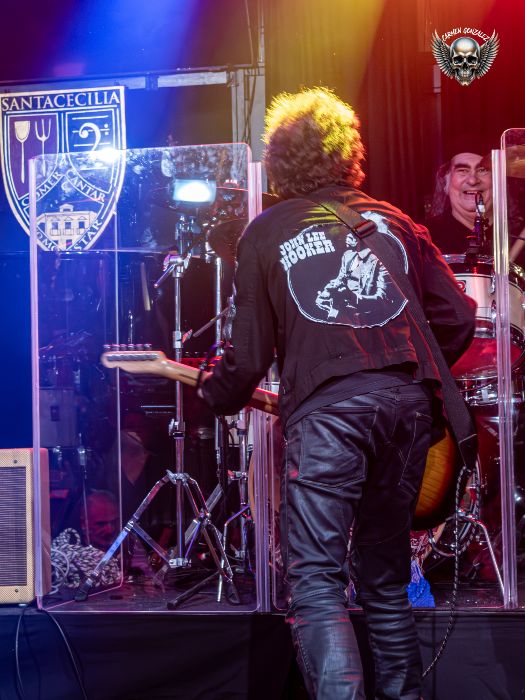 En la recta final, el show continúa con “Children Of Paradise”, de su duodécimo trabajo de estudio de igual nombre editado en 2018. “Heaven Help The Lonely”, una de mis favoritas y con un sonido muy actual pese a haber sido lanzada hace unos cuantos años, concretamente en el 91, en el disco “Places I Have Never Been”. Siguen con “House Of A Thousand Guitars”, perteneciente al álbum de 2019 de su mismo título que sirve de homenaje a todos los músicos que le han influido con el sonido de sus guitarras. En ella Willie Nille menciona a Jimmy Hendrix, Robert Johnson, Hank Williams, Bob Dylan, The Rolling Stones, John Lennon, Muddy Waters y John Lee Hooker. Curiosamente algunos de ellos aparecen claramente representados en los parches de su chaqueta. Al término de este tema, Nile volvió a tener un detalle con uno de los pequeños de la sala obsequiándole con una púa. Nos da las gracias por venir y continúa presentándonos “Run Free” de su disco de estudio “New York At Night” de 2020.