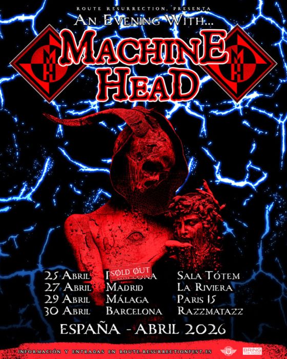 Machine Head regresa a nuestros escenarios en una gira exclusiva por salas compuesta por 4 fechas. Pamplona, con todo el papel vendido, Madrid, Málaga y Barcelona difrutarán de una formación liderada por Robb Flynn inmersa en la celebración de su 35º aniversario.