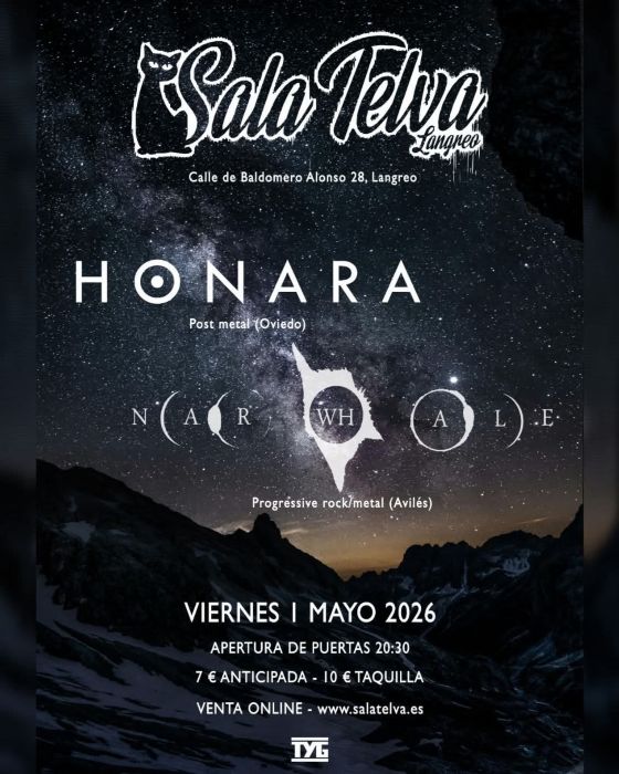 Quince meses después Honara y los avilesinos Narwhale regresan a la Sala Telva de Langreo para repetir una velada de clara querencia por los sonidos progresivos.