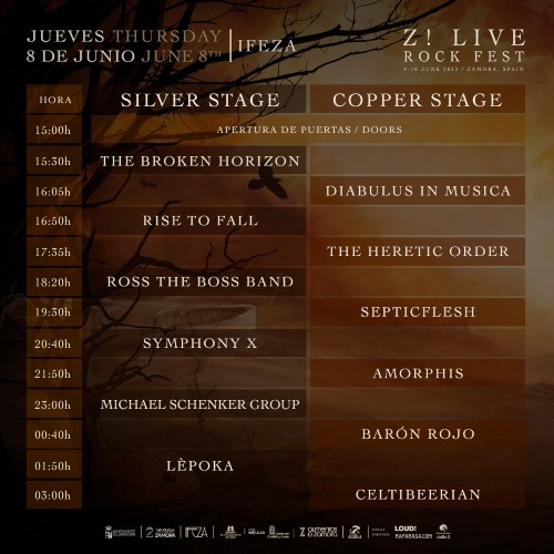 La entrada es independiente al abono del festival y contará con servicio de autobús con salida y retorno a Zamora. El jueves 8 de junio el festival se trasladará al recinto ferial Ifeza en la que destacan las actuaciones de Michael Schenker, Amorphis, Symphony X, Ross The Boss o Barón Rojo en su gira de despedida.