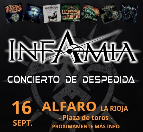 INFAMIA para nosotros ha sido algo muy importante en nuestras vidas. Una demo, seis discos y miles de momentos únicos e irrepetibles junto a vosotr@s… GRACIAS!!! Pero antes de irnos, daremos un concierto muy especial en Alfaro, nuestra casa, repasando TODA nuestra discografía. Será un gran día, ¡¡¡no os lo perdáis!!! (Puede que hasta haya alguna sorpresa). Estamos trabajando para intentar llevar nuestra música a más ciudades por última vez. Estad pendientes a nuestras redes sociales.