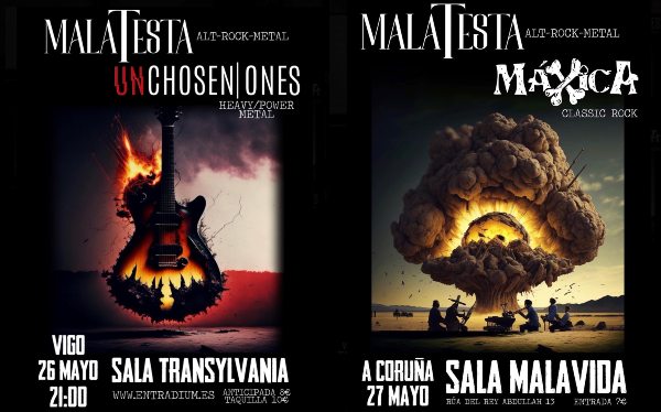 El trio alternativo ovetense Malatesta afronta este fin de semana una doble cita con los escenarios gallegos. El viernes 26 de mayo recalarán el Pub Transylvania de Vigo junto a los power metaleros locales Unchosen Ones y un día después presentarán su álbum debut «El Instante Perfecto» en la Sala Malavida de La Coruña acompañados en esta ocasión por Máxica.