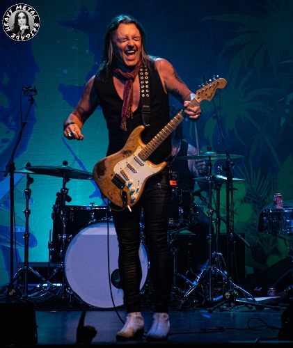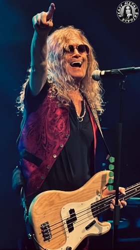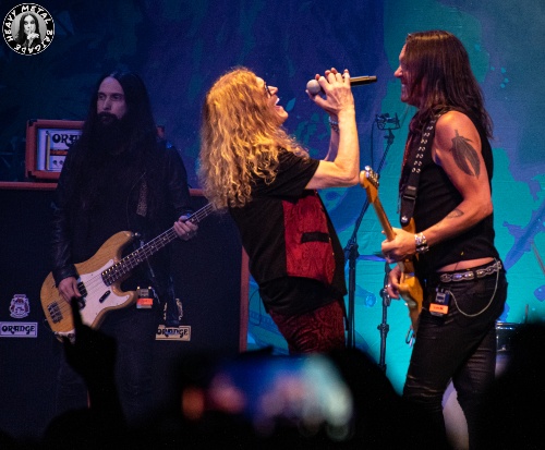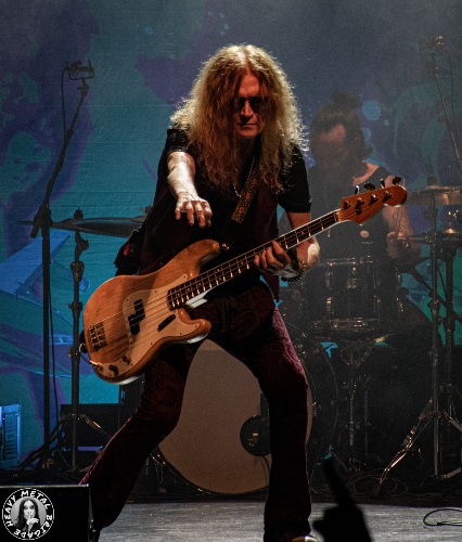Y lo hizo ante una audiencia entregada desde las primeras notas de una “Stormbringer” con un Hughes de lo más risueño, oculto tras unas gafas de sol y subiendo hasta notas altísimas ya desde los primeros instantes. Arranque fulgurante, preciso, con un gran sonido y el público pasándoselo como nunca. Ninguna floritura en cuanto a puesta en escena. Un gran telón de fondo, con un Hughes debidamente rejuvenecido, y arriba de las tablas solo lo esencial. Y ante nuestras retinas, un clásico detrás de otro. Con “Might Just Take Your Life” a más de uno se nos iban los pies. Andersen aprovecharía aquí para insertar un pequeño solo de guitarra que habría de desembocar en aquella “Sail Away” del “Burn” para regocijo de un teatro que empezaba a ser consciente de la que se le venía encima.