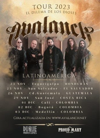 Tras su esperado regreso los renovados Avalanch continuarán la presentación en vivo de su nuevo disco «El Dilema de los Dioses» en Latinoamérica. La formación capitaneada por Alberto Rionda lo estrenará por primera vez en Honduras, El Salvador, Guatemala, Costa Rica y Colombia.