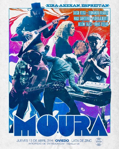 Moura, eso sí, toparían con la ya célebre frialdad del público asturiano. Diego Veiga se haría grande aquí. Y es que ya desde el reposado arranque pareció meterse al publico en el bolsillo. Ayudó como digo el buen sonido que desarrollaron. Dos guitarras, dos voces, bajo, batería, teclados, sintetizadores, panderetas, maracas y hasta una lata de ¿aceite?. Todo formando una amalgama fácilmente discernible y lo que es mejor: disfrutable.