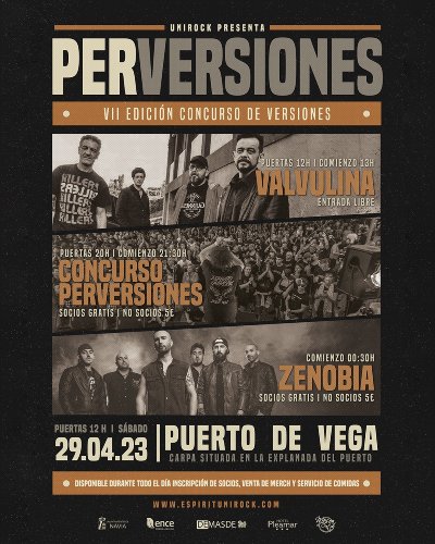 La jornada arrancará al mediodía del sábado y acceso libre con el concierto protagonizado por Valvulina, banda gijonesa de rock ganadora del IV Concurso de maquetas COMA. A las 21:30 horas con acceso gratuito para socios y 5€ para el público general tendrá lugar el «Perversiones » hasta bien entrada la medianoche, siendo el broche final el concierto de Zenobia, la formación liderada por Jorge Berceo arrancará su show a eso de las 00:30 horas también con acceso gratuito para socios y un simbólico precio de 5€ para el público general. Recordamos que esta nueva entrega tendrá lugar en una emblemática ubicación, la esplanada del puerto de la localidad costera asturiana. Los premios en esta edición son los siguientes: