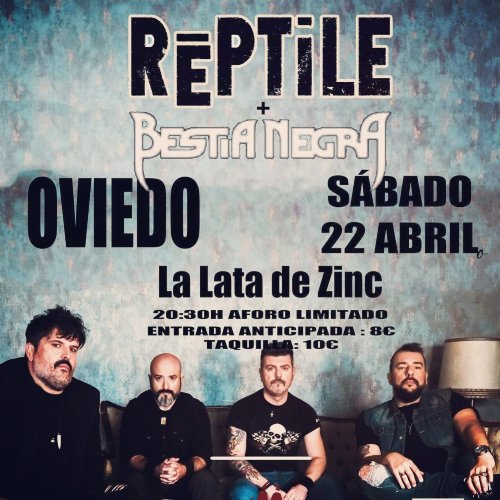 No muy lejos, en la Lata De Zinc, los hard rockeros Rēptile presentarán su nuevo disco «Animales Salvajes» grabado en Cube Estudio con Alberto Seara y Carlos Escobedo a los mandos. Compartirán tablas con Bestia Negra a punto de lanzar al mercado su ópera prima, de la que darán buena cuenta en la velada. Entrada anticipada 8€, en taquilla 10€, disponible venta online a través del siguiente enlace: https://entradium.com/es/events/reptile-malatesta-en-la-lata-de-zinc-oviedo