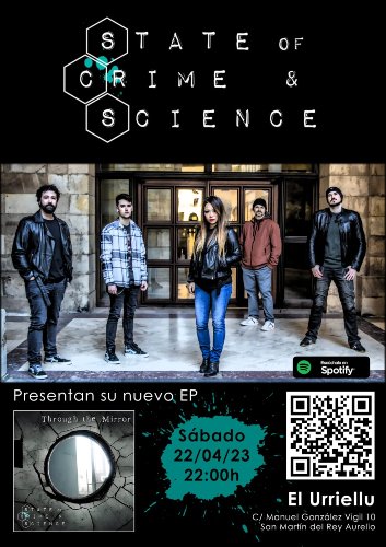 Los alternativos State Of Crime & Science (S.O.C.S.) continúan con la presentación de su nuevo Ep «Through The Mirror» editado hace escasas fechas con parada en El Urriellu (El Entrego). La cita que tiene carácter gratuito, es una nueva ocasión para hacerte con dicho nuevo trabajo, disponible únicamente en sus conciertos.