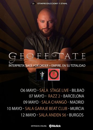 Tras 3 aplazamientos desde el 2019 tendrá lugar al fin la gira por nuestros escenarios protagonizada por Geoff Tate, voz en la formación más emblemática de los pioneros progresivos Queensrÿche.Un tour que recupera la celebración del 30º aniversario de la publicación de «Empire«, una de sus obras más recordadas, y que será interpretada íntegramente en vivo junto a «Rage For Order» para ofrecer un show de más de 2 horas y media de duración.