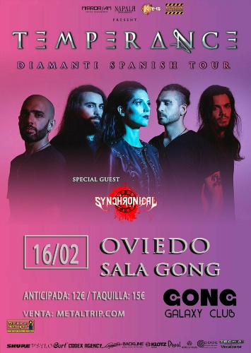 Salida de jueves a tierras ovetenses para recibir en el Gong Galaxy Club, poco a poco nuestra segunda casa en la capital, a los madrileños Synchronicaly los italianos Temperance. Una cita que quizá no tuvo una gran acogida (un jueves y dos bandas no del todo conocidas…) y que se dio tal y como sigue.