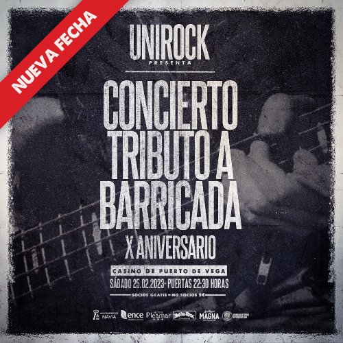Para conmemorar el 10º aniversario del nacimiento de la idea de retomar la Asociación Unirock de Puerto de Vega se celebrará este sábado 25 de febrero el concierto tributo a Barricada. El pasado 30 de junio se cumplieron 10 años del primer tributo a los navarros, germen del retorno de una Asociación Unirock desaparecida en 1984 y que a día de hoy se encuentra en un inmejorable estado de salud, llevando cada año a su festival veraniego a cotas superiores.