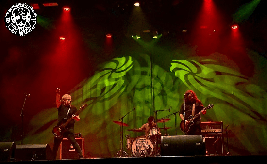 La puesta en escena no puede ser más sobria. Solo lo elemental. No necesitan más. Es solo rock ‘n’ roll pero me gusta. Para cuando la banda sigue con “Caucasian Rock” ya noto que tienen al público en el bolsillo. Un público al que cabe decir noté algo frío respecto a otros conciertos del grupo, quiero pensar que por aquello de tener que estar con las posaderas cosidas al asiento, y no tanto porque hayamos envejecido por dentro como lo hemos hecho por fuera. Aunque quién sabe. Sea como fuere, todo siguió con “Fat Snake Blues”, una de las favoritas para quien escribe y que disfruté como un enano.