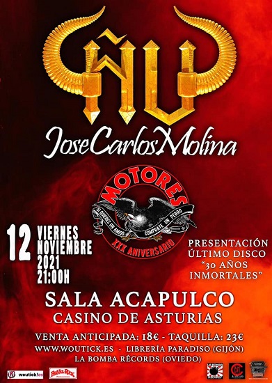 En la Sala Acapulco de Gijón será la cita en la que estarán acompañados por los vigueses Motores, inmersos en su gira de despedida y presentación de su último disco “30 Años Inmortales”. La formación capitaneada por Jose Carlos Molina recordará sus clásicos de siempre y alguna que otra sorpresa, tras la publicación este mismo año de un nuevo disco en solitario.