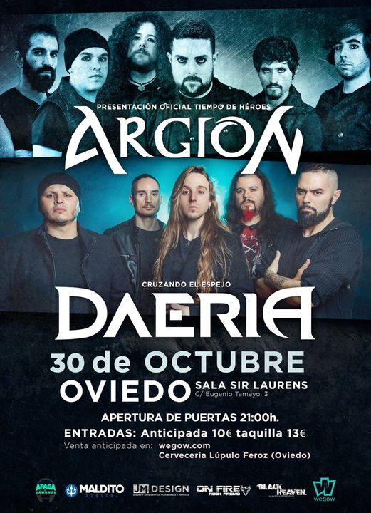 Los de Barcelona, viejos conocidos en la región desde su etapa como Doria, presentarán su último disco «Alter» publicado en el mes de febrero del pasado año en una velada muy esperada por el público asturiano. Por su parte Argion que se estrenaba en vivo el pasado 3 de septiembre en Izagre (León) arrancará oficialmente la gira promocional de su notable álbum debut «Tiempo de Héroes» en la que compartirán escenario con Celtian, Düdedain o Sylvania.