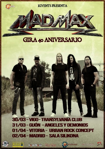Tras varios aplazamientos la gira 40º aniversario de los veteranos alemanes Mad Max confirma cuatro fechas en nuestros escenarios, incluida parada el viernes 31 de marzo en la Sala Ángeles y Demonios de Gijón.