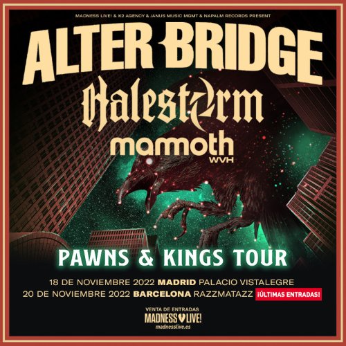 MADRID Apertura de puertas 18:30 h. Mammoth WVH 19:30 h. Halestorm 20:20 h. Alter Bridge 21:40 h.