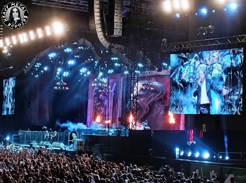 Dickinson demostraba su buen estado vocal enfundado en una estética completamente negra en la que destacaba un guiño a la cultura samurai japonesa, un pequeño moño coronaba su cabeza. No hubo que esperar mucho para disfrutar de la primera aparición de Eddie The Head en el escenario. Pertrechado en una armadura bushi y katana en mano arremetía contra la formación. Nada nuevo en la teatralidad innata del combo pero no por ello celebrada con menor algarabía por la parroquia presente.