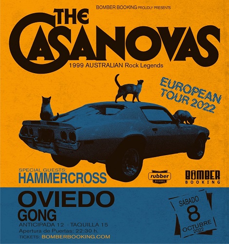 Los hard rockeros australianos The Casanovas recalarán en Oviedo el próximo sábado 8 de octubre dentro de su extensa gira por la península. La cita tendrá lugar en el Gong Galaxy Club compartiendo escenario con los mierenses Hammercross.