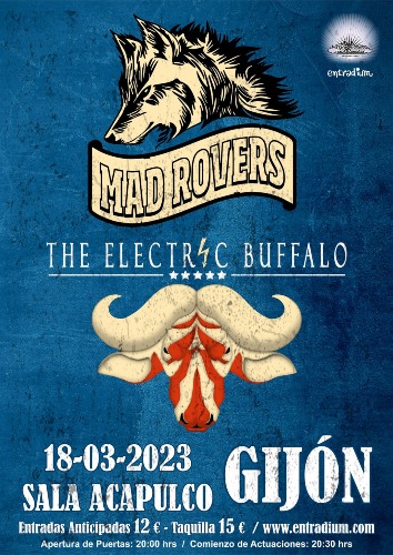 Gran noche de rock and roll la vivida en la gijonesa sala Acapulco juntando a The Electric Buffalo con Mad Rovers. Que en vista de la calidad que ambas agrupaciones atesoran, tal vez se nos quedó un poco corta en cuanto a entrada, tampoco es esta una sala pequeña, y que vino a darse más o menos como sigue.
